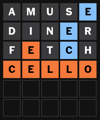 ⬛⬛⬛🟨⬛ ADIEU